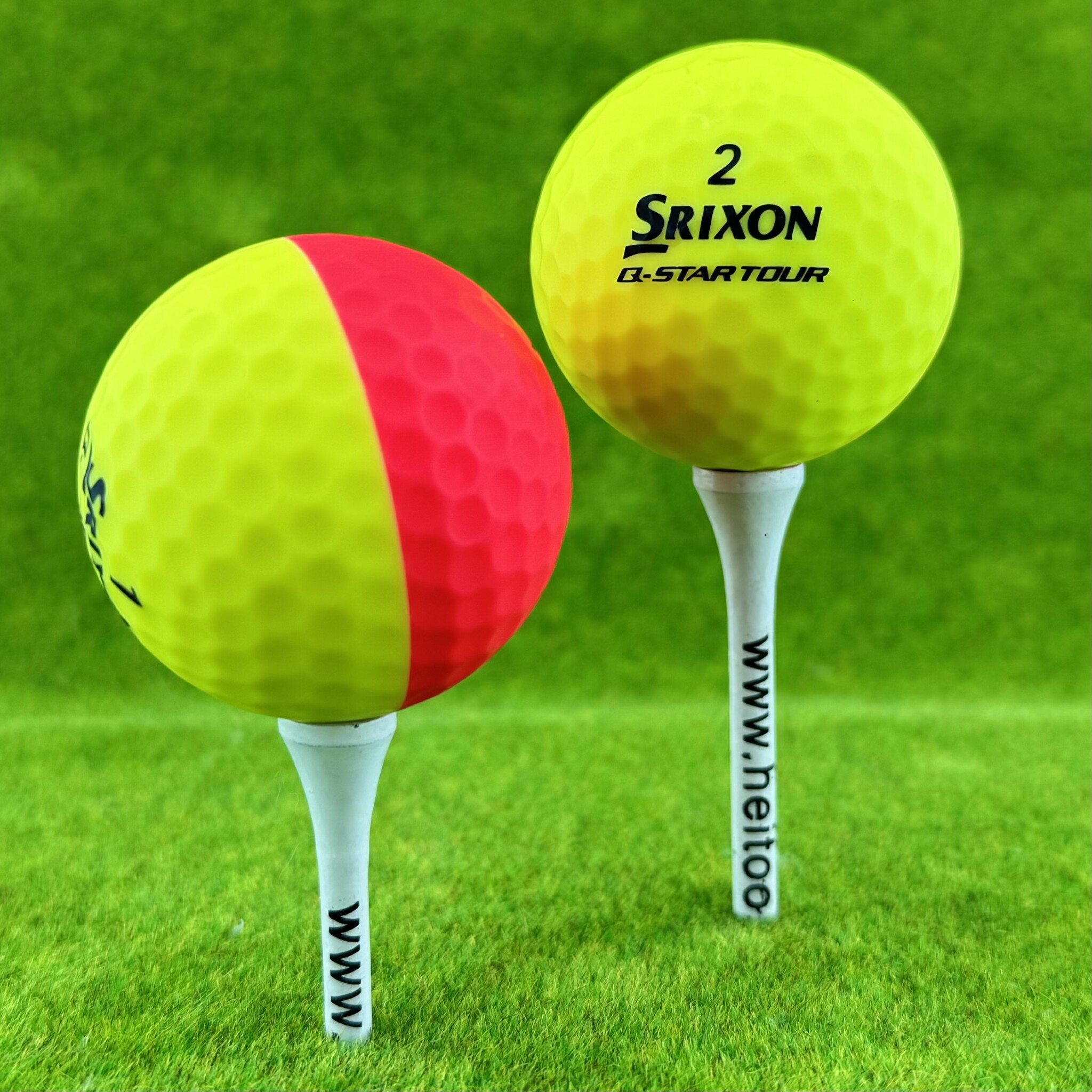 Srixon Q Star TOUR Divide AAA/AAAA kwaliteit lakeballs. Mix van diverse kleur combinaties zoals geel/oranje, geel/rood, geel/blauw.